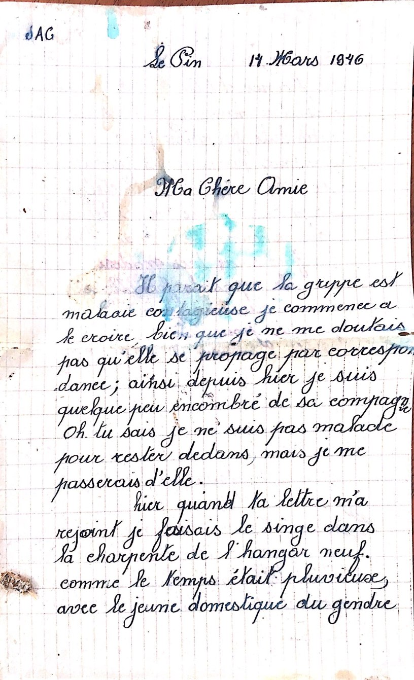 Il parait que la grippe est maladie contagieuse car je commence à le croire, bien que je ne doutais pas qu’elle se propage par correspondance; ainsi depuis hier, je suis quelque peu encombré de sa compagnie. Oh tu sais, je ne suis pas malade pour rester dedans, mais je me passerais d’elle.