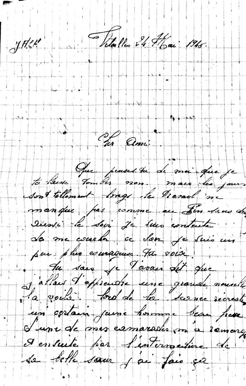 Tu sais je t’avais dit que j’allais t’apprendre une grande nouvelle. La voila. Lors de la séance récréative, un certain jeune homme beau frère d’une de mes camarades m’a remarquée et ensuite par l’intermédiaire de sa belle sœur, j’ai fait sa connaissance. Mais avant toute fréquentation, j’ai voulu que mes parents le connaissent. Et après, on m’a laissé libre de faire comme je voudrais. Et j’ai réfléchi, bien prié maman de m’éclairer et l’esprit saint m’a éclairé. Je comprends que nous ne sommes pas l’un pour l’autre. Aussi sans attendre je l’ai écrit à ma camarade. On a bien raison de dire que l’amour ne s’achète pas. Il était très bien physiquement, bien moralement, mais pour vivre avec quelqu’un toute un vie, il faut l’aimer.